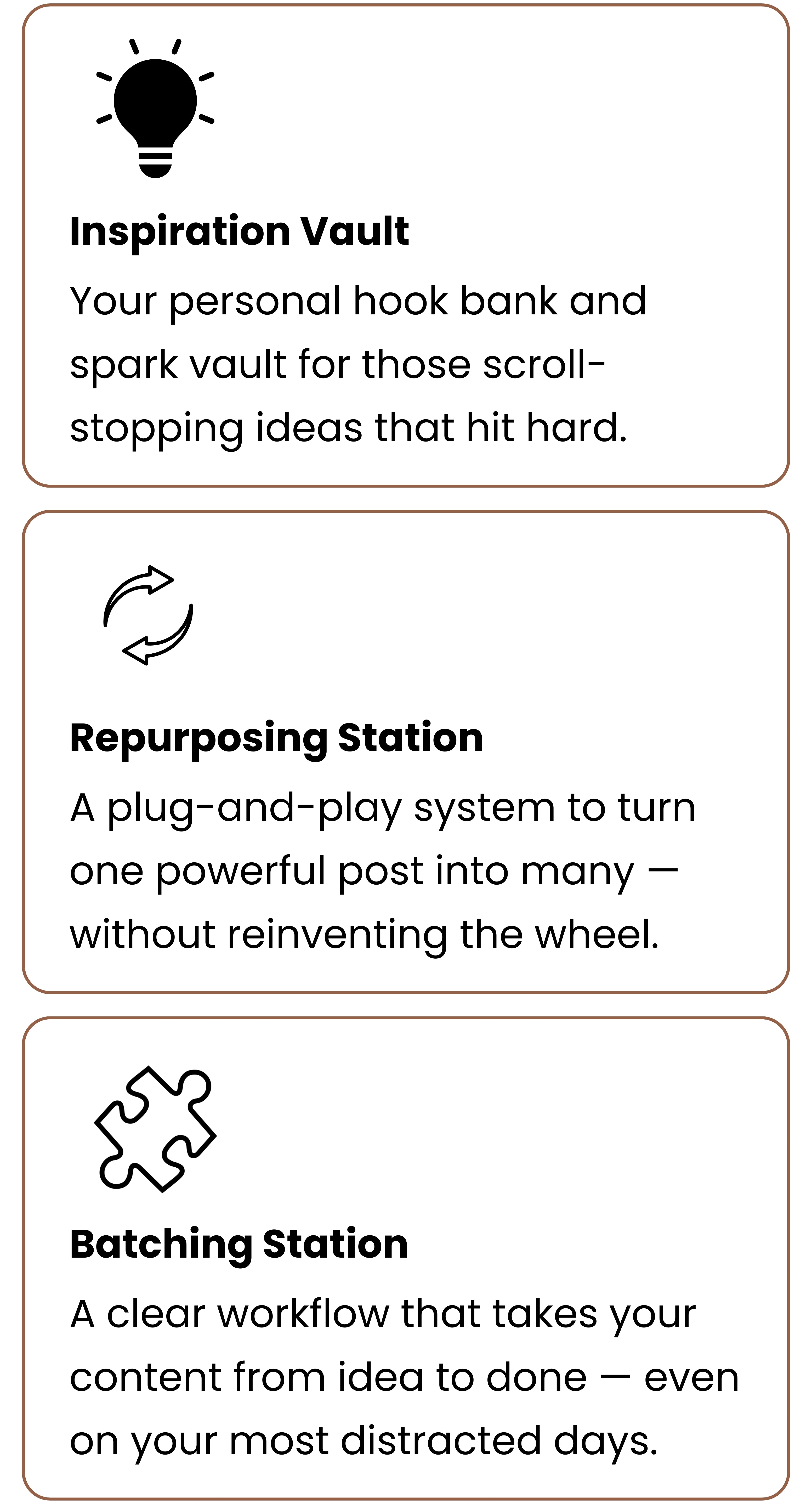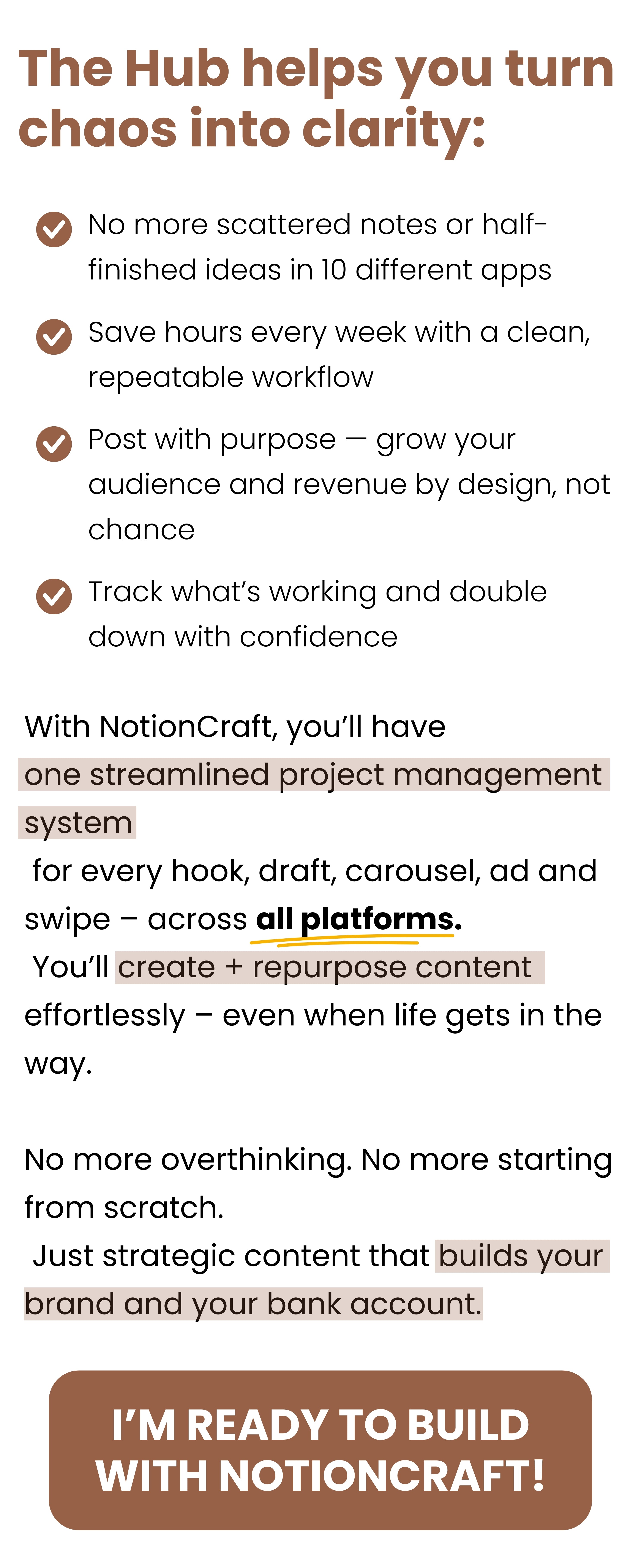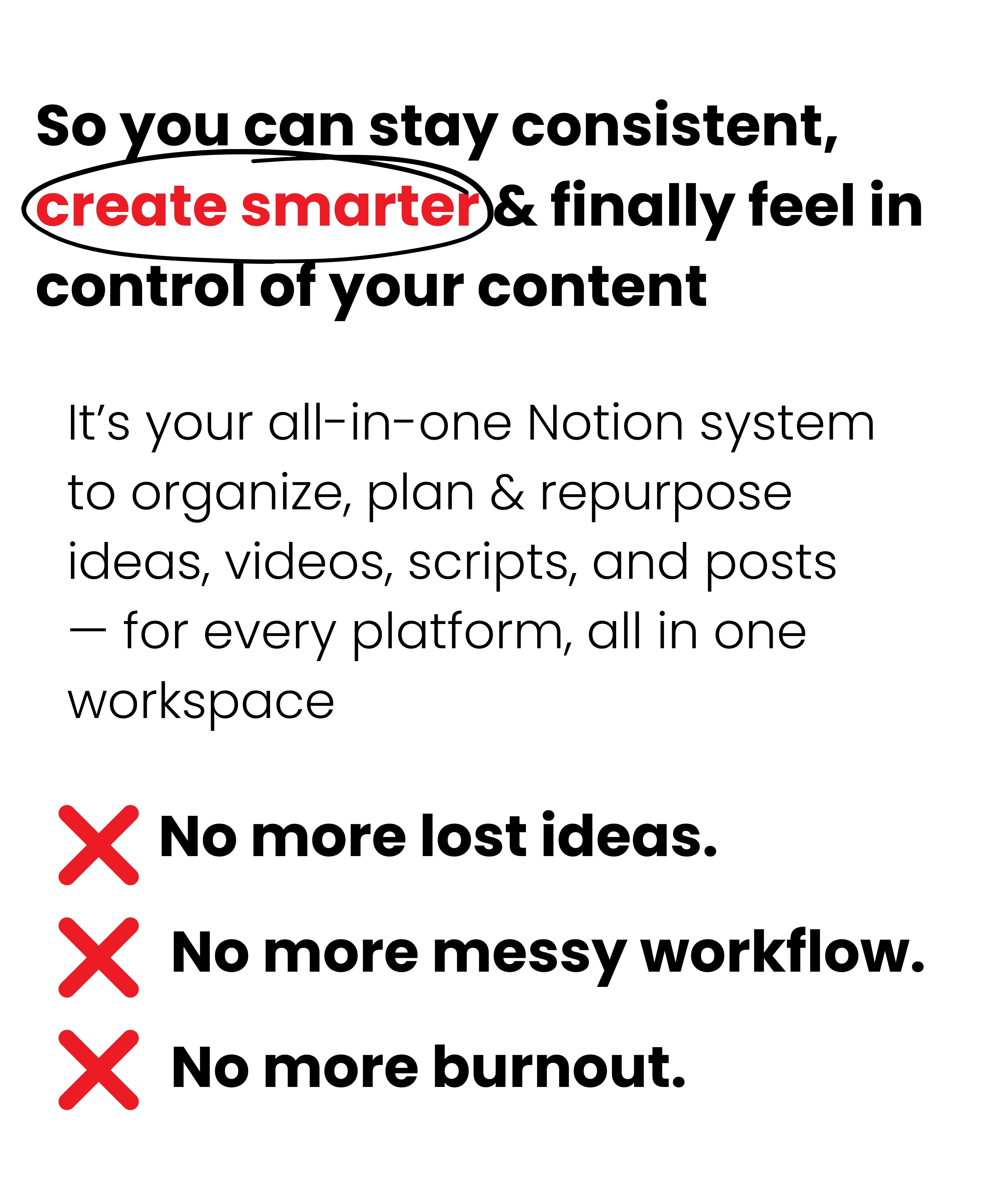 Your all-in-one Notion workspace to capture, organize & repurpose your content — so you can turn ideas into consistent posts & sales without burning out.