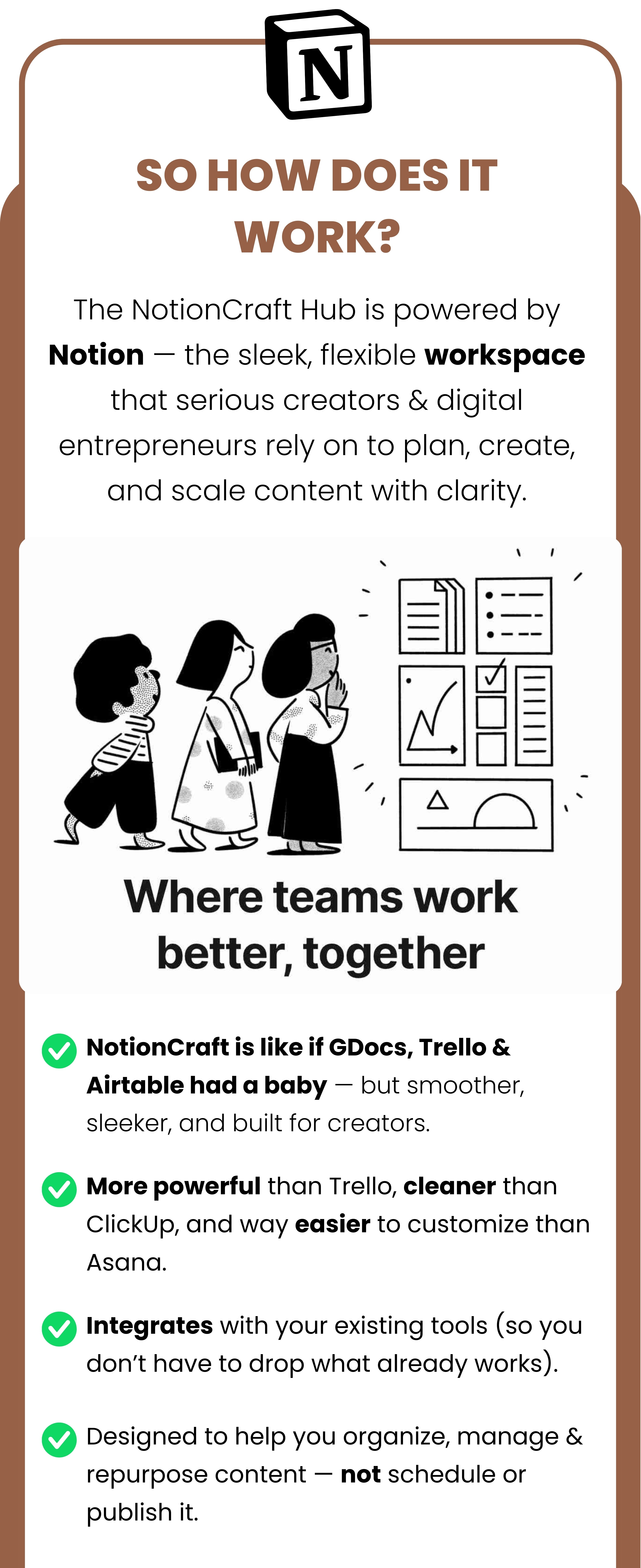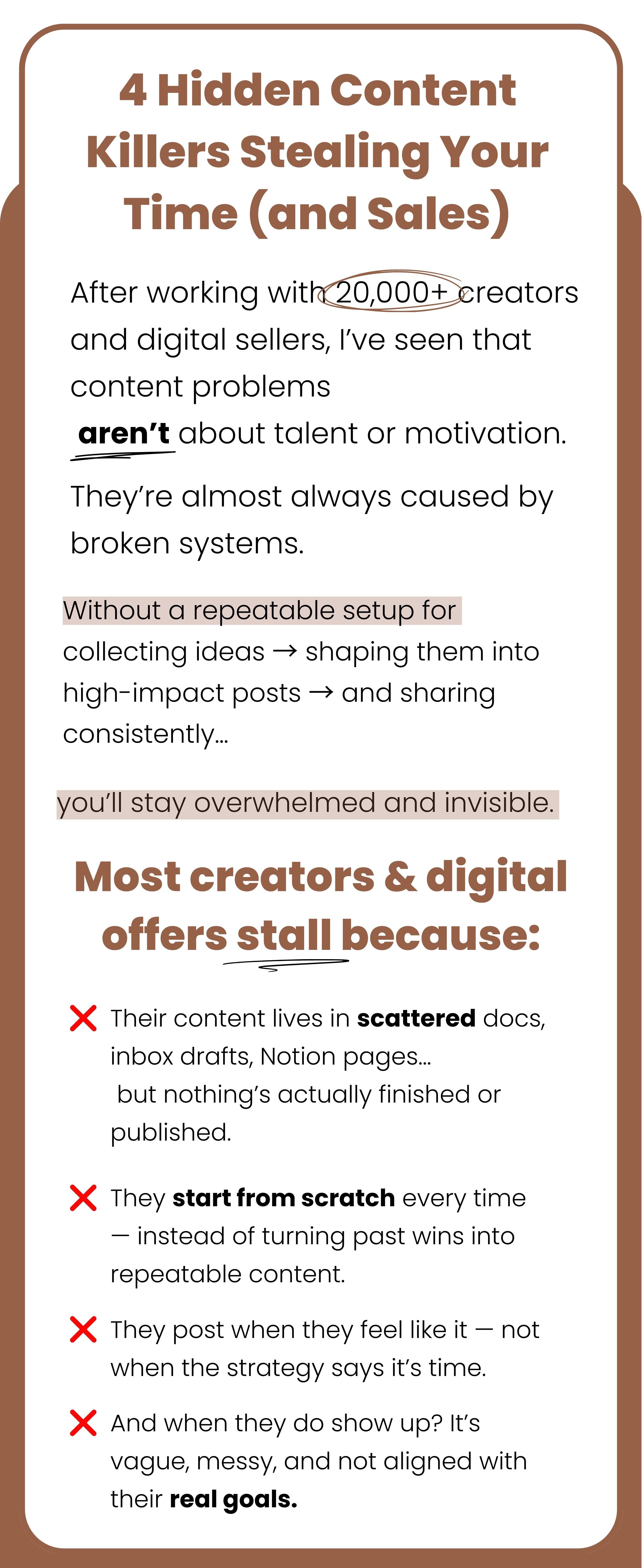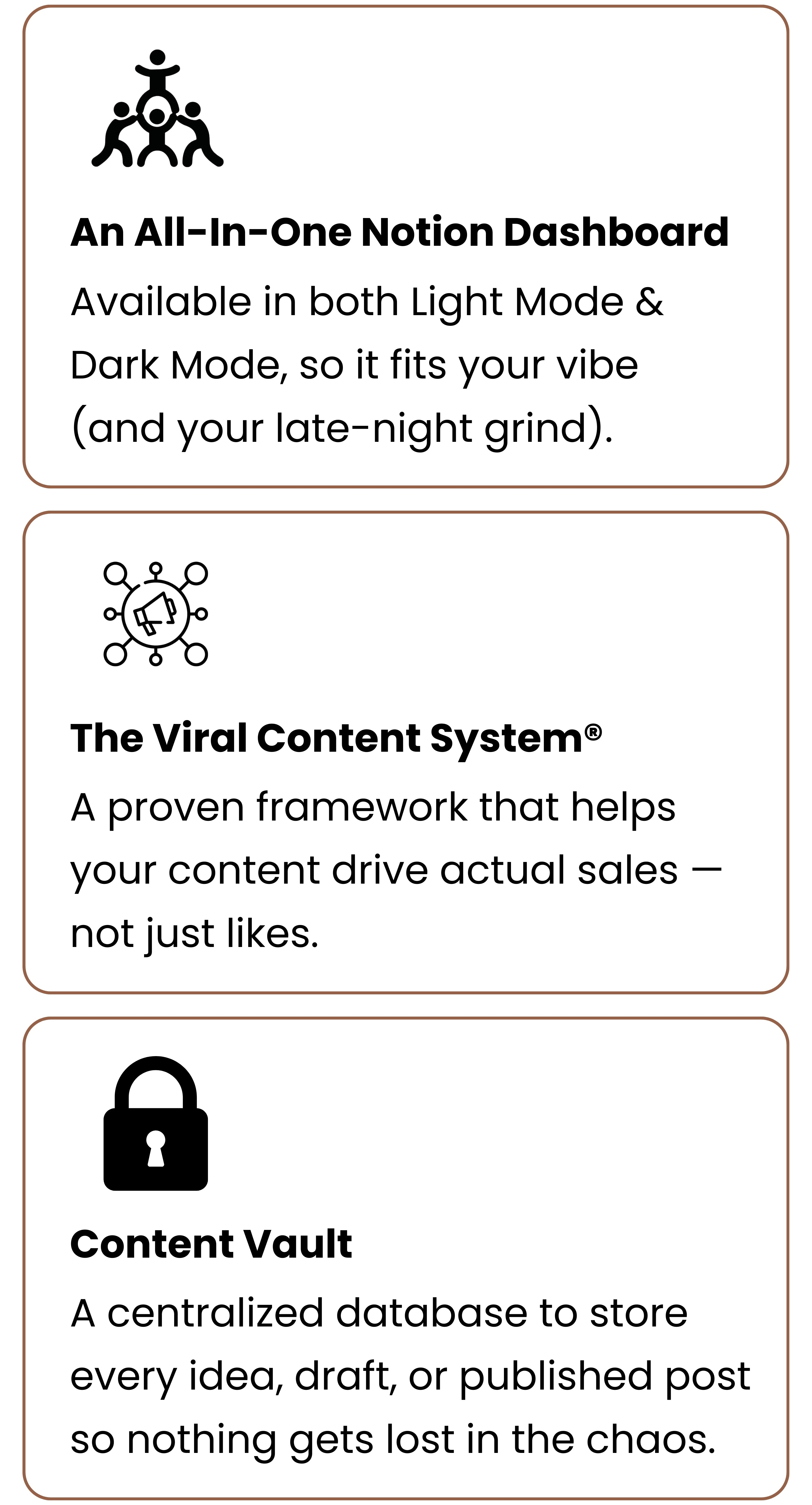 Your all-in-one Notion workspace to capture, organize & repurpose your content — so you can turn ideas into consistent posts & sales without burning out.