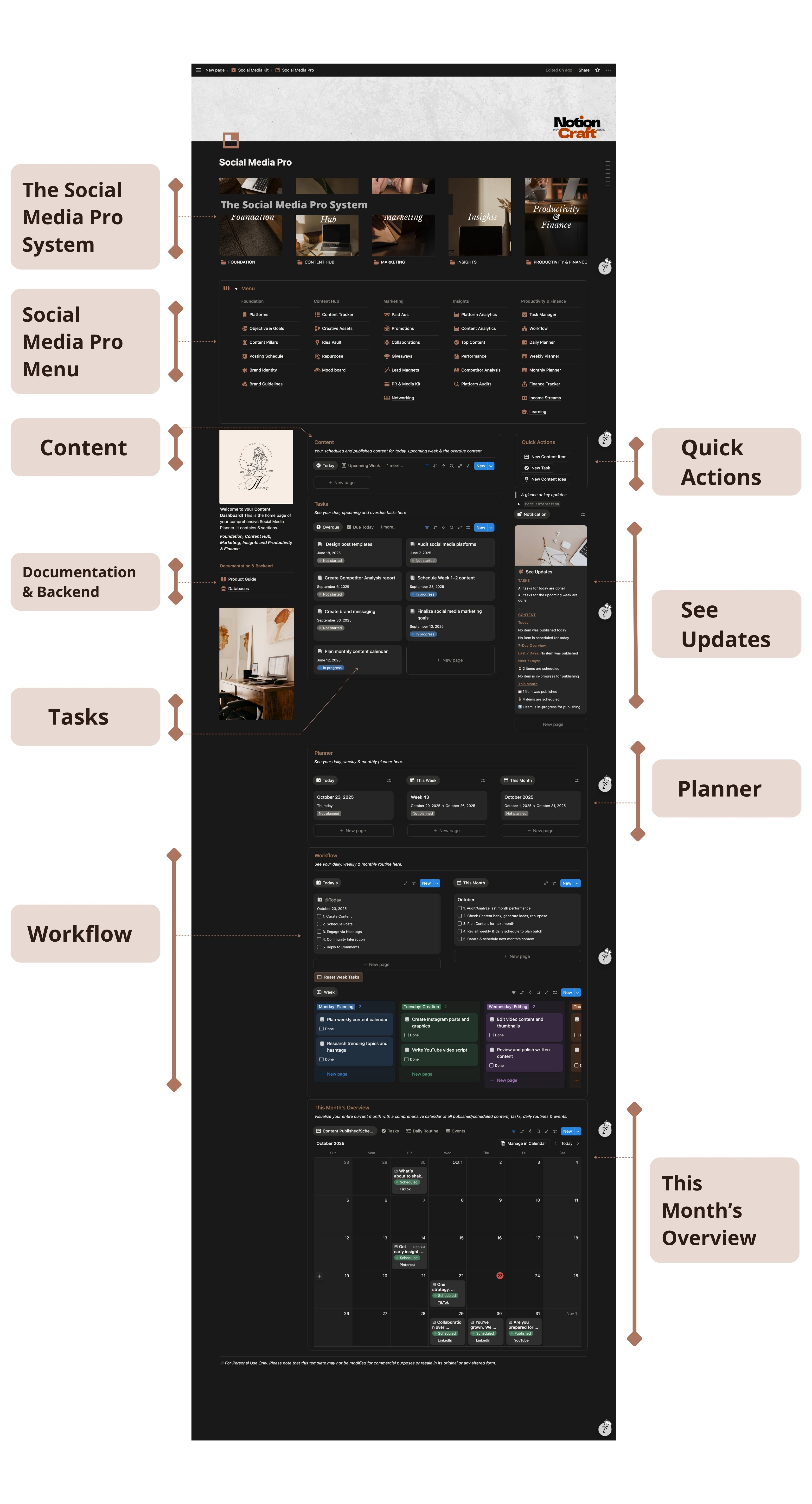 With the NotionCraft Content OS, you’ll have one streamlined project management system for every hook, draft, carousel, ad and swipe – across all platforms. You’ll create + repurpose content effortlessly – even when life gets in the way.